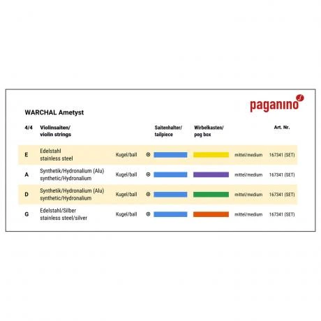 High Quality synthetic core strings. Ametyst strings offer a pure and focused sound which is brighter than Karneol. Although they are intended for better instruments, they will improve the sound of all levels of violins. They have a synthetic core, and normally take approximately three days to achieve tuning stability and optimum tone quality.