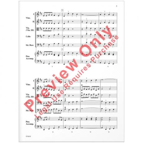 The famous first movement of Bach’s Brandenburg Concerto No. 5, arranged by Richard Meyer, has been simplified and shortened for the first-year player but still retains all the energy and spirit of the original. It uses only the notes of the D major scale (including a few »high E’s« for Violin I), and the rhythms are within reach of players with very little experience. The perfect selection for your beginning orchestra’s first »real piece«, this arrangement is sure to become a traditional part of your string curriculum.