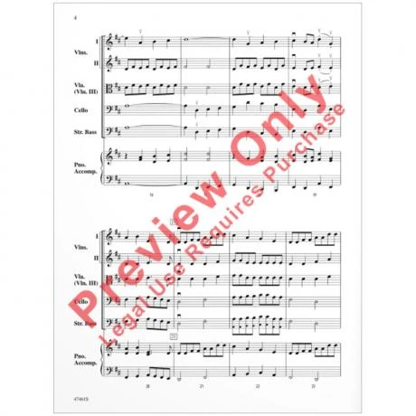 Ausgabe für Streichorchester (2 Violinen, Viola (oder 3. Violine), Violoncello, Kontrabass, Klavier ad lib.), Partitur und Stimmen. Schwierigkeitsgrad: leicht.