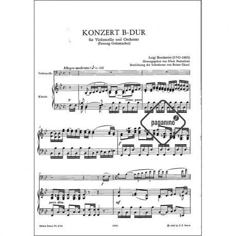 für Violoncello und Klavier von Luigi Boccherini. (Fassung Grützmacher)