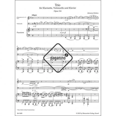Urtextausgabe für Klarinette (Viola), Violoncello und Klavier.