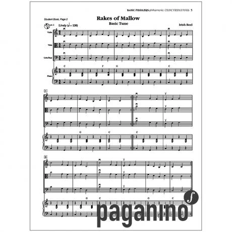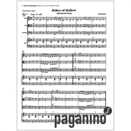 New from the Philharmonic series, this collection is an absolutely perfect way to introduce Celtic fiddling to your youngest string players! Eleven tunes from the Celtic fiddling tradition are presented first in a simplified, very easy »Basic« version of the tune printed with note names in the note heads. The tune is also presented in an »Advanced,« but still accessible version of the tune. Lyrics are included where applicable. The accompaniment CD features recordings of the Basic and the Advanced tune as well as a back-up track for play-along at home or in class.