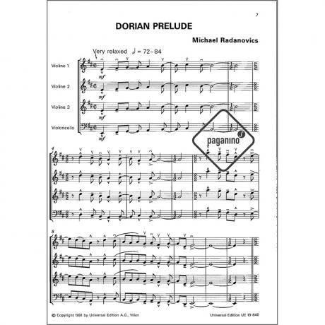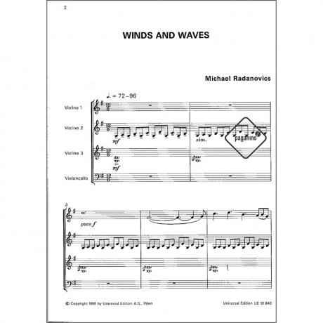 Partitur und Stimmen für Streichensemble in variabler Besetzung. Komponiert von Michael Radanovics.