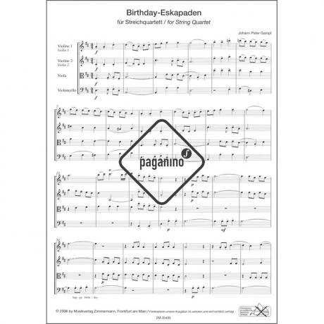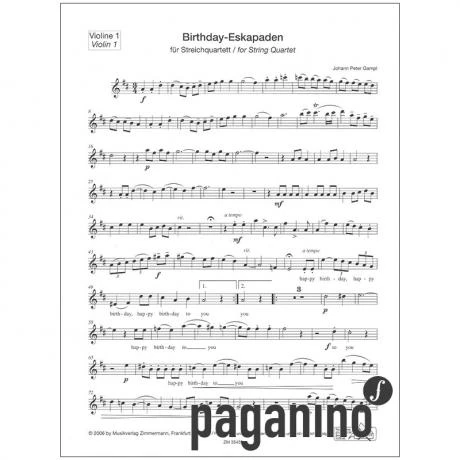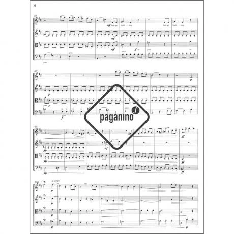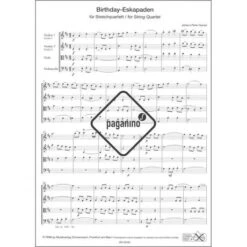 Der Gassenhauer “Happy Birthday to you” wird hier klassisch aufgewertet durch die Besetzung (Streichquartett) und die kompositorische Form (Sonatenhauptsatzform). Das witzige Stück ist leicht zu spielen und eignet sich daher gut für die Musikschule. Und ganz sicher ist es ein Spaß für jede Geburtstagsparty oder als Zugabe an einem Quartett-Abend.