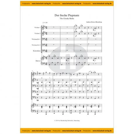 Besetzung: Violine 1, Violine 2, Violoncello 1, Violoncello 2, Kontrabass, Klavier (Viola 1, Viola 2 optional).