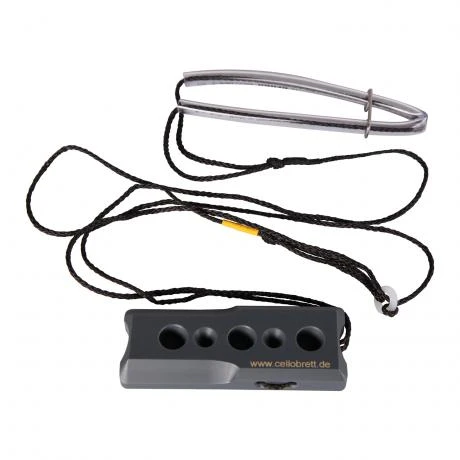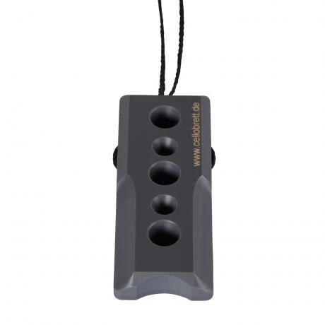 Ideal for any floor (even stone), for tours (in a cello case),when changing places (chamber music). Length easily adjustable to any chair and any body height (even children). Small and light, fits in a spectacle case! Reliable and good for concert use due to 7 advantages: definitely doesn’t slip while giving security to the player when changing positions; thick 6 mm loop attached to the steel foot; the rope does not get in the way of the feet, length easily and quickly adjustable; large, stable inserts in hard PVC; length only 14.5 cm, wight appr. 110 gr.