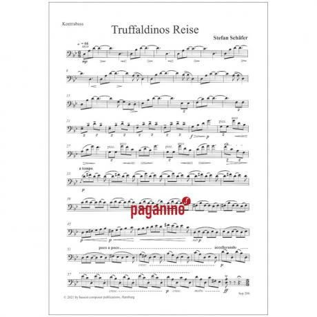 The one-movement piece is divided into a slow and fast part and has a medium level of difficulty. The bass part goes up to 7th position.
