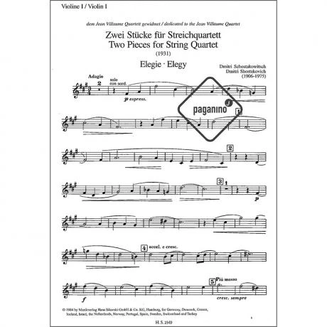 Ausgabe für 2 Violinen, Viola und Violoncello, Partitur und Stimmen.