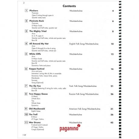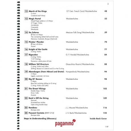 24 vierstimmige Stücke für Ihr Streichorchester vom ersten bis zum zweiten Jahr! Die Sammlung beginnt mit einer reinen Pizzicato-Auswahl in D, E, Fis, G, A. Das letzte Stück bietet einen Vorgeschmack auf die Barockzeit mit einer Bearbeitung von J.S. Bachs Bauernkantate. Dazwischen gibt es eine attraktive Auswahl an Originalkompositionen und Bearbeitungen von Volksmelodien und klassischen Liedern.