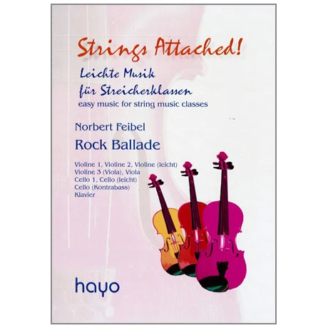Eine weitere Ausgabe der Reihe “Strings Attached” – leichte Musik für Streicherklassen. Die “Rock Ballade” ist ein stimmungsvolles Stück, das bei den Kindern sehr beliebt ist und immer wieder mit Hingabe gespielt wird. Der “Bogenschwung” in den leichten Stimmen sollte deutlich und mit großer Geste ausgeführt werden – in einer großen Gruppe immer wieder ein beeindruckender Anblick. Den Kindern gibt er Gelegenheit, die vier Pausen-Zählzeiten zu “erfühlen”. Je nach Leistungsstand der Kinder können verschiedene Besetzungen gewählt werden (auch als Solostück – Melodiestimme und Klavier)