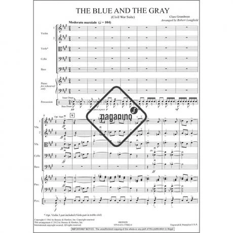 »The Blue and the Gray« erinnert nicht nur an den vor über 150 Jahren ausgebrochenen Amerikanischen Bürgerkrieg zwischen Nord- und Südstaaten, sondern ist auch eine passende musikalische Würdigung der Geschichte dieses Landes. Clare Grundmans bemerkenswertes Medley aus amerikanischen Volksliedern ist hier von Robert Longfield für Streichorchester bearbeitet worden und beinhaltet die Stücke Kingdom Coming, Marching Through Georgia, Tenting Tonight, The Yellow Rose of Texas, The Bonnie Blue Flag, Aura Lee, Dixie, The Battle Cry of Freedom und Battle Hymn of the Republic.