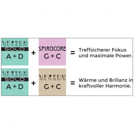 Our tip: Combine the Versum Solo A + D with the Versum cello strings G + C for more warmth and brilliance in powerful harmony or with the Spirocore G + C for impeccable focus and maximum power.