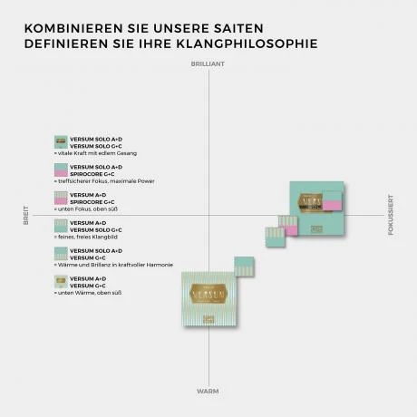 VERSUM SOLO A + D strings offer more presence for both bright and dark instruments.