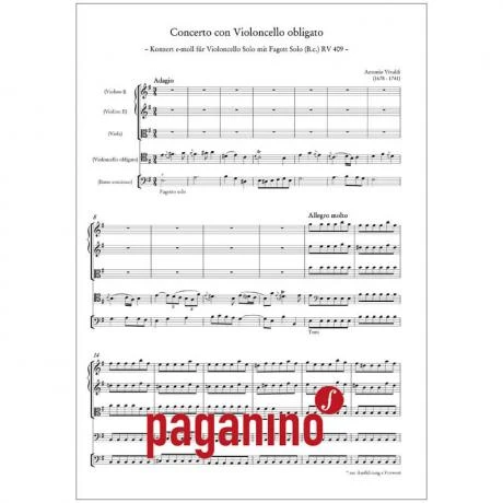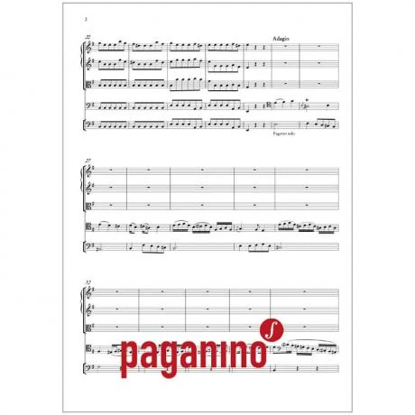 Urtext-Ausgabe fĂĽr Violoncello solo, 2 Violinen, Viola und B. c., Partitur.